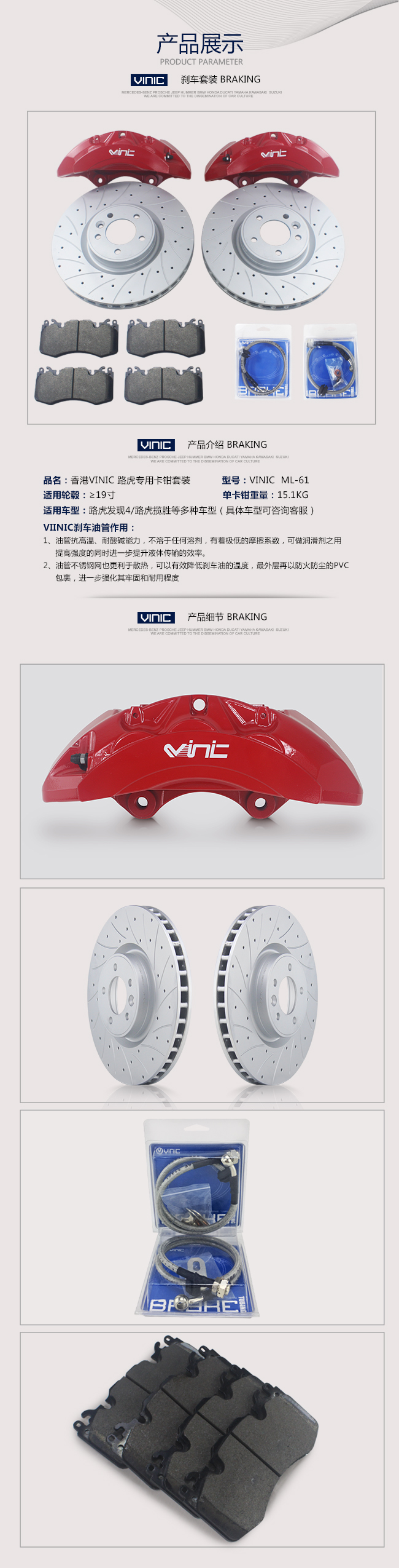 VINIC 路虎 ML-61 汽車剎車盤套裝
